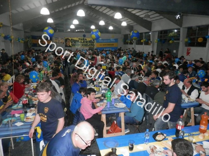 El gimnasio del club Unión Apeadero se tiñó en la noche del sábado de “azul y oro”, donde la peña boquense “Guillermo Barros Schelotto” festejo su primer aniversario en Saladillo. La cena show estuvo conducida por el periodista que cubre la campaña de Boca en TyC Sport Tato Aguilera, acompañado por Claudio Freire. Además se contó con la presencia del exBoca José Basualdo.
