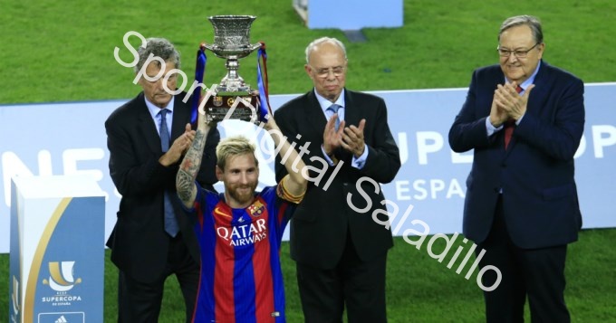 El crack rosarino volvió a festejar la obtención de la Supercopa con el equipo catalán, al vencer al Sevilla que conduce el argentino Jorge Sampaoli por 3-0, y como local. En la ida habían conseguido otro triunfo (2-0) con lo cual logró un resultado global de 5-0 para adjudicarse el trofeo.