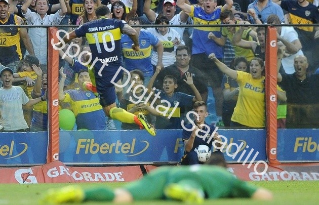 La tranquilidad para el local llegó desde los pies de Tevez, que le puso el pecho a las circunstancias y, con una notable definición, marcó el cuarto y definitivo. Se jugaban 34 minutos, Orión contuvo un derechazo de Pavón, el "Apache" tomó el rebote, desparramó a Nicolás Sánchez con un amague e hizo el cuarto tanto, que hizo estallar al estadio.