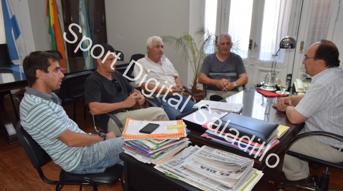 El Intendente, Ing. José Luis Salomón, acompañado por el Subsecretario de Deportes, Recreación y Juventud, Prof. Mariano Méndez, y el Director de Deportes, Prof. Nicolás Tosca, recibió en su despacho a integrantes de la comisión directiva del Club Defensores de Atucha.