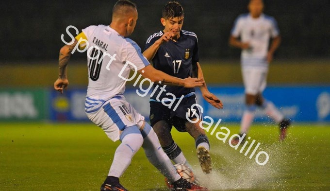 Así, Argentina logró inquietar al arquero uruguayo Santiago Mele con centros desde ambos costados, con Nicolás Zalazar también sumado al ataque por el sector derecho, pero que no lograron abrir el marcador.