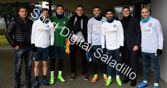 El “Patón” y su preparador físico, Bruno Militano, posaron junto a Icardi, Ever Banega, Rodrigo Palacio, Juan Pablo Carrizo, Cristian Ansaldi y Javier Zanetti, director deportivo del club interista.