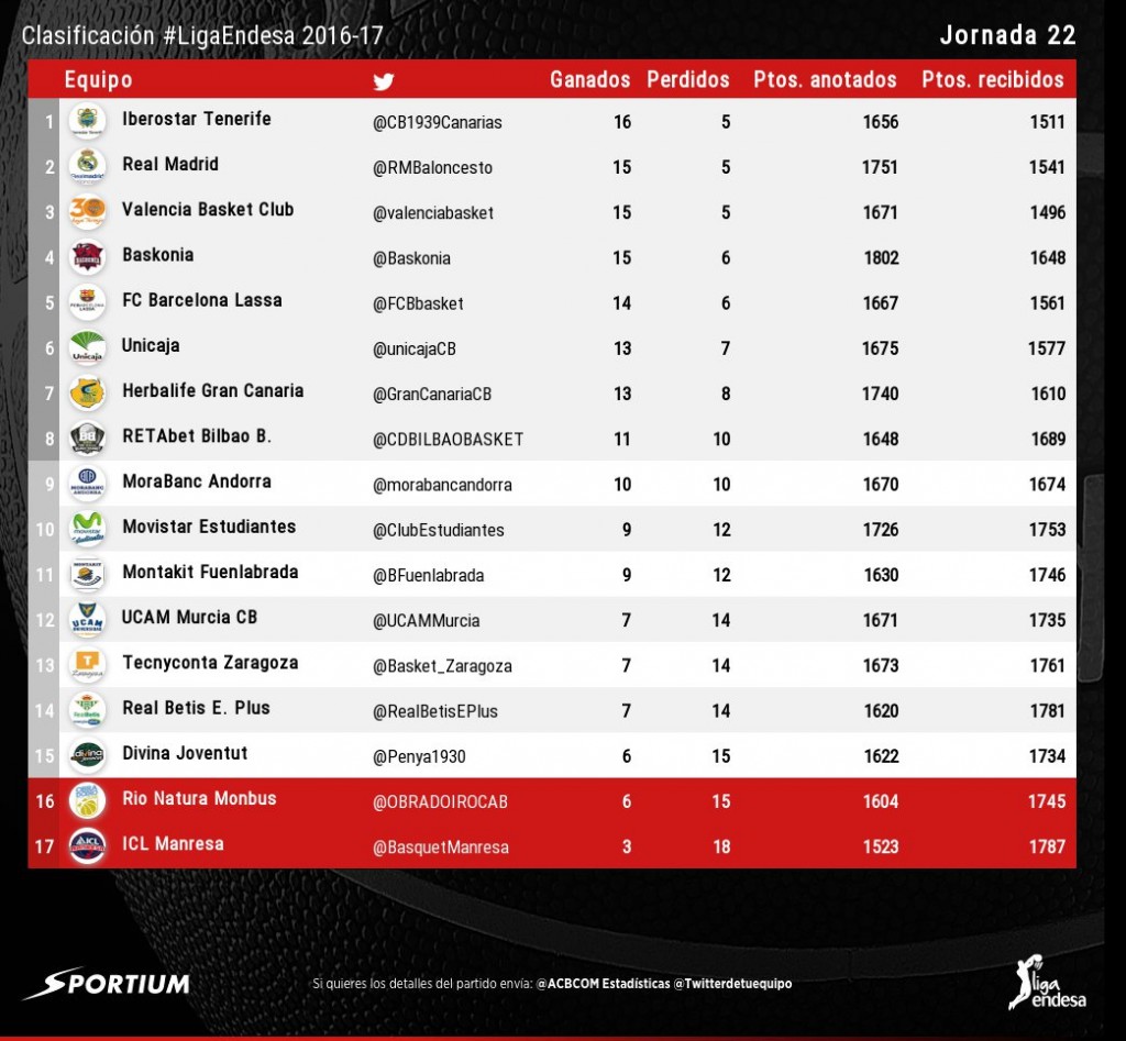 Parciales: 17/17, 28/14, 31/20 y 16/29. Árbitros: Daniel Hierrezuelo Navas, Francisco Araña Santana y Jordi Aliaga Solé.