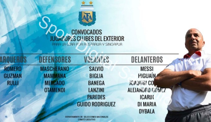 En relación a la última lista que entregó Bauza, sólo se repiten Romero, Guzmán, Otamendi, Mascherano, Banega, Di Maria, Biglia, Messi e Higuaín. Y hay que dejar la puerta abierta para que Sampa convoque a los "locales": Mariano Andújar (Estudiantes) y Marcos Acuña (Racing).
