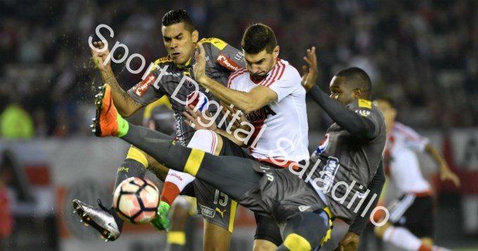 Los goles del equipo colombiano fueron convertidos en el segundo tiempo por John Hernández y Andrés Mosquera y el defensor ecuatoriano Arturo Mina descontó para el club de Núñez, que, de haber finalizado primero en la general de la fase, se habría garantizado cerrar como local todas sus series a ida y vuelta.