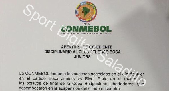 La Conmebol le abrió un expediente a Boca por lo ocurrido en el Superclásico del jueves, “tras recibir los informes correspondientes”.