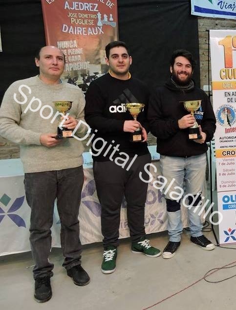 Se llevó a cabo este domingo el 1° Torneo IRT Sub 2200 en la ciudad de Daireaux donde tuvieron una destacada actuación varios ajedrecistas saladillense, como Nelson Lujan obteniendo el segundo lugar, Ferruccio Zanovello cuarto y Martín Loiza sexto, entre casi cuarenta tableros de varias ciudades. El ganador fue Matías Rodríguez de Bolívar, quien termino igualado en puntos con el saladillense Lujan. Información exclusiva para ABC Saladillo y Sport Digital Saladillo de Marcelo Hermida.