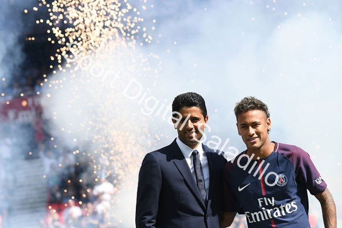 Neymar presencio el partido desde las gradas en lo que fue el debut del PSG mientras la hinchada cantaba "Neymar, Neymar", algo que lo puso muy contento al delantero que terminó por sacarse la camiseta para lanzarla al público.