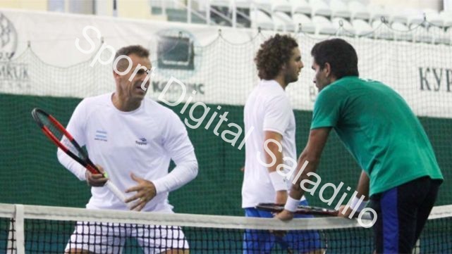 Los doblistas Máximo González y Andrés Molteni trabajaron junto al subcapitán Mariano Hood y el sparring Marco Trungelliti, bajo la atenta mirada de Daniel Orsanic , en las canchas auxiliares del National Tennis Centre de Astana, sede del repechaje en la capital kazaja.