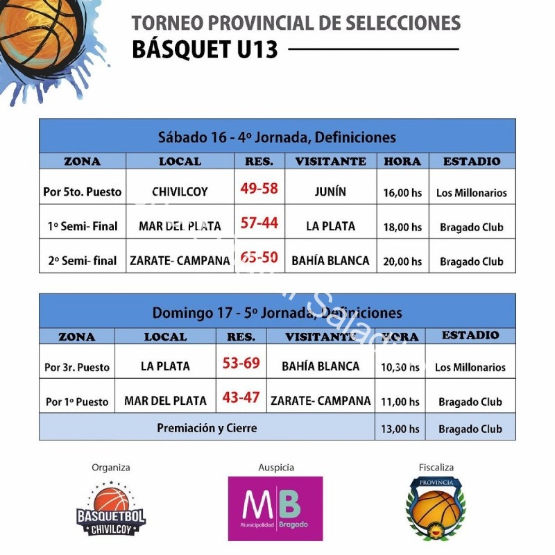 Tercera fue Bahía Blanca que supero a La Plata 69 a 53. En el quinto lugar se ubico Junín y sexto Chivilcoy.