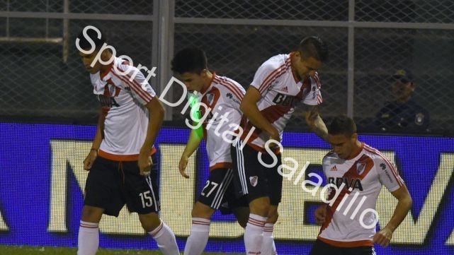El colombiano Rafael Santos Borré (3m.PT), Carlos Auzqui (25m.PT) y el debutante Marcel Picazzo (48m.ST) marcaron para River, y el propio Auzqui (38m.PT) descontó de cabeza en contra para el local.