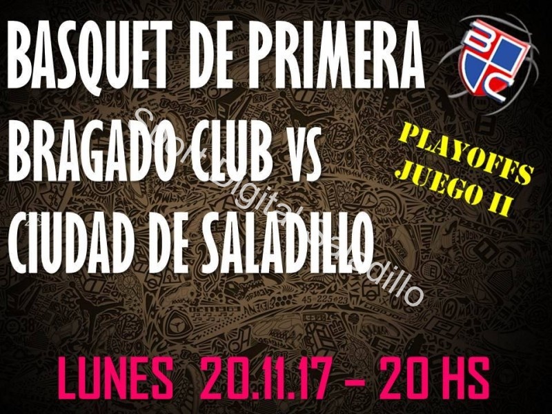 El plantel superior del club Ciudad de Saladillo jugará este lunes ante Bragado club en condición de visitante por el segundo juega de la semifinal del torneo de primera división que organiza la ABCh. El partido será desde las 20, recordando que Ciudad ganó el primer juego por 85-79, luego de dos suplementarios.