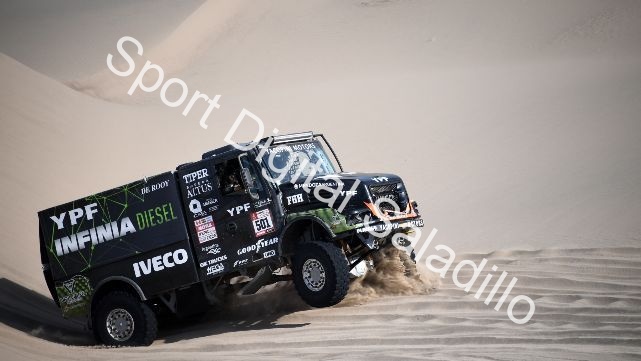 El cordobés ganó la 6° etapa en camiones y se acerca al ruso en la general. El Coyote cronometró 3 horas, 22 minutos y 23 segundos.