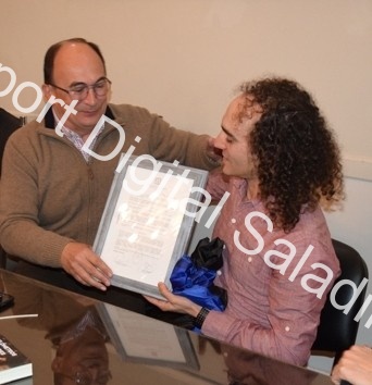 El atleta Jorge Castillo, que días pasados presentó el libro de su autoría en el C.U.R.S.- fue recibido por el Intendente Ing. José Luis Salomón, quien le dio la bienvenida y lo saludó por la iniciativa.