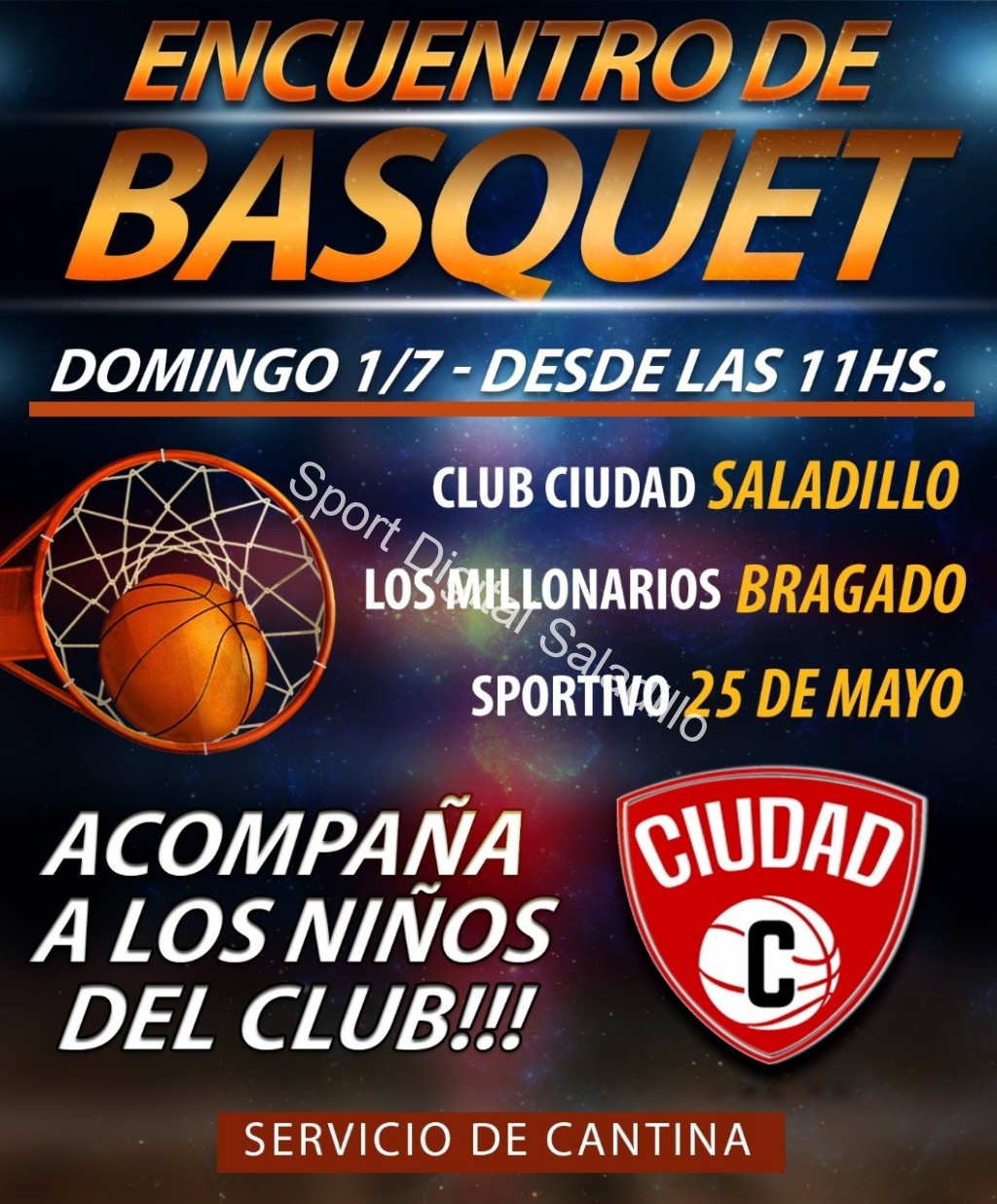 Este domingo desde las 11 se realizará un Encuentro de Minibasquet (Escuelitas y Premini) en la cancha del club Ciudad de Saladillo. Participan el local, Los Millonarios de Bragado y Sportivo de 25 de Mayo.