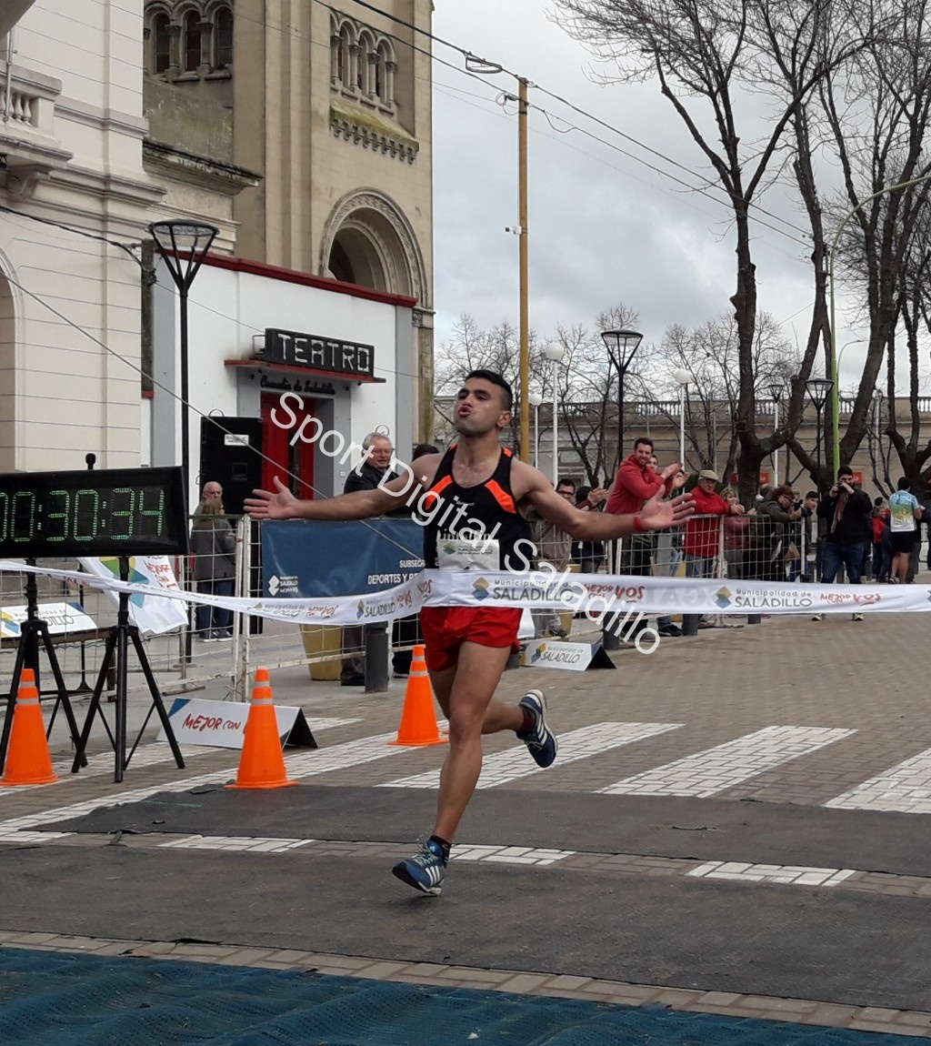 Se desarrolló una nueva edición de los 10K Ciudad de Saladillo, esta vez en conmemoración del 155° aniversario de la ciudad. En la general se impuso el local Ezequiel Aguilera, mientras que en categoría damas, fue su coterránea la que subió a lo más alto del podio, Francisca Almirón. El día, para la carrera que organizó el Circulo de Atletas de Saladillo y la Secretaria de Deportes, se presentó muy frio, aunque pese a ello gran cantidad de atletas se hicieron presentes, no solo para los 10k, sino para el resto de las distancias (2 y 5k). Por su parte, el local Ezequiel Aguilera, ganador de la general, señaló: “Se corrieron los 10km de mi ciudad, Saladillo y pude quedarme con el primer lugar de la general, corrimos a un ritmo muy bueno,  ya que el día se presentó muy ventoso. Los primeros 5km fueron muy duros, ya que era un ida y vuelta el recorrido, pero al dar la vuelta me pude acomodar y empecé a correr a mi ritmo.  Doy gracias a toda la gente de Saladillo que me fue a alentar, a Lali  Flocco, una persona que me acompaña en este deporte desde mi inicio y en mis entrenamientos, a Oscar Raimo que me está dando una gran mano en mis entrenamientos, gracias por confiar en mí, a mis sponsor muchas gracias por ayudarme. A seguir entrenando duro y a buscar más podios para Saladillo”.