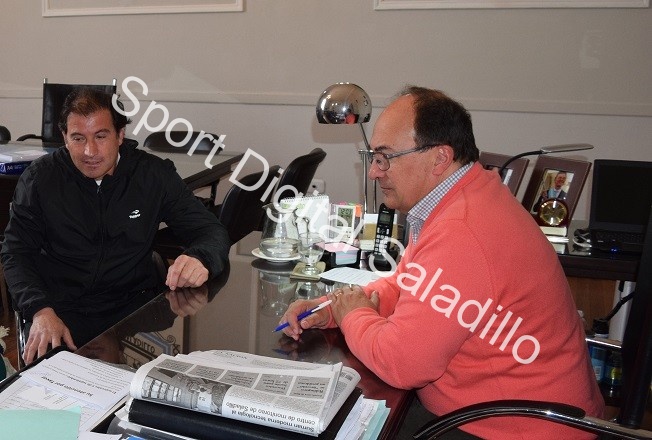 El Intendente de Saladillo, Ing. José Luis Salomón, acompañado por el Subsecretario de Deportes, Prof. Mariano Méndez, recibió en el Palacio Municipal al Presidente de la Liga de Fútbol local, Julio Lombardo.