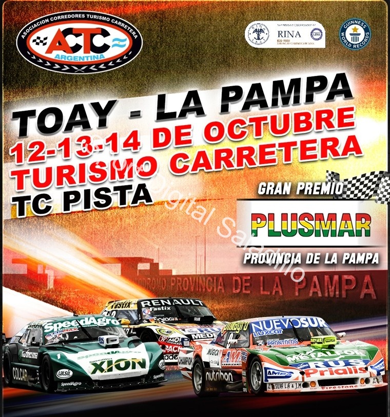 El Turismo carretera retornará por décima oportunidad a uno de los trazados más rápidos del país. Por primera vez, Matías Rossi llegará como el líder de la Copa de Oro con 52 puntos, cinco por delante de su inmediato perseguidor y actual campeón, Agustín Canapino. Un escalón por debajo, Werner, Castellano, Pernía y Lambiris son los que, por ahora, se disputan los puestos de vanguardia (entre los que obtuvieron victorias, requisito obligatorio para ser campeón). Julián Santero, el mendocino de Dodge, llegará como una amenaza a Toay. Si bien no se encuentra dentro de la Copa de Oro, virtualmente estaría clasificando por el sistema de 3 de último minuto y su triunfo en La Pedrera lo sitúa como candidato en la pelea por la corona. A su vez en el circuito pampeano se producirá la vuelta del saladillense Juan Martin Bruno, ausente en la anterior por un problema presupuestario.