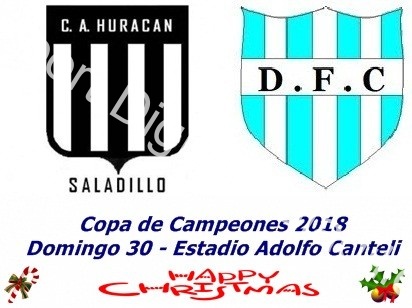 Se llevará a cabo hoy el último evento del año organizado por la Liga de Fútbol de Saladillo, con la disputa de la Copa de Campeones del año en el estadio Adolfo Canteli, entre Defensores de Del Carril (campeón del Apertura) y Huracán (campeón del Clausura), mientras que en reserva jugaran Argentino con La Lola.
