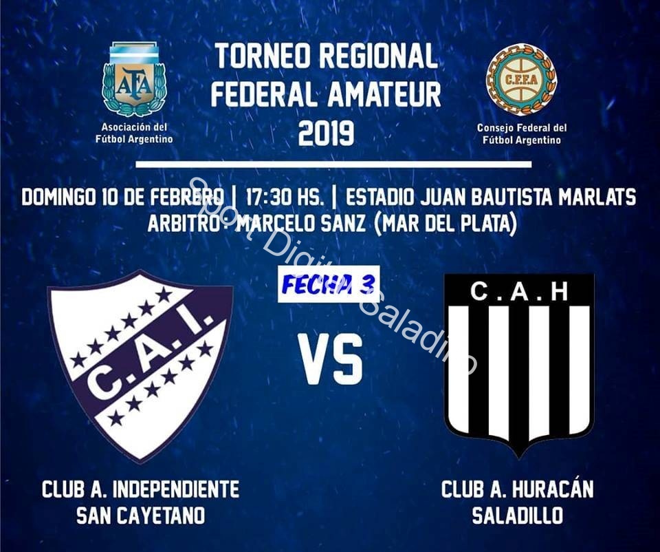 El Consejo Federal designó las ternas arbitrales para la tercera fecha del Torneo Regional Amateur 2019. En el caso del partido Independiente de Necochea y Huracán de Saladillo, la terna será de Mar del Plata. Actuará como árbitro principal Marcelo Sanz, acompañado con los líneas Camila Araujo y Manuel Debrina.