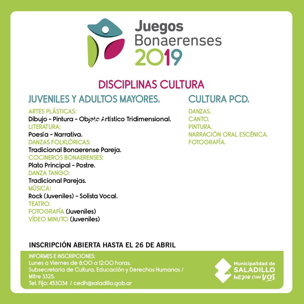 Anotate en las disciplinas de Cultura de lunes a viernes de 8 a 12 horas en la Subsecretaría de Cultura, Educación y Derechos Humanos (Mitre 3325).