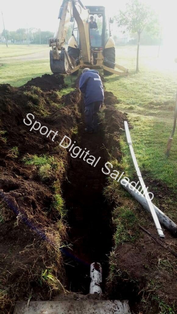 Con personal y equipamiento dependiente de la Dirección Municipal de Obras Sanitarias, se construyó el desagüe de los baños que se hicieron en la pista de atletismo.