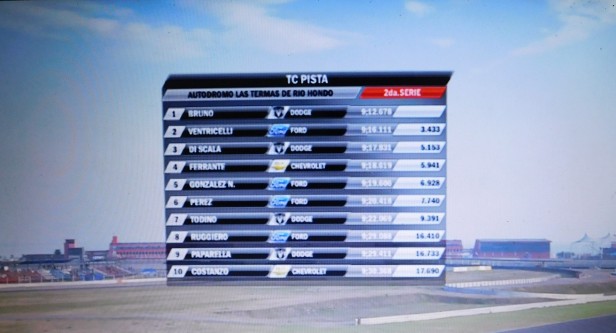 Cristian Di Scala completó el terceto de punta con la Dodge, en tanto que Gastón Ferrante y Nicolás González cerraron el quinteto de una batería en la que Sebastián Diruscio y Nazareno López debieron abandonar, mientras que Juan Pablo Barucca recibió un toque que lo retrasó cuando venía sexto.