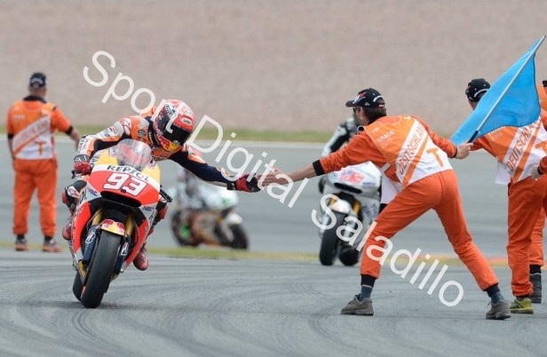 El español Marc Márquez (Honda) se impuso en el Gran Premio de Alemania de MotoGP, este domingo en el circuito de Sachsenring, una carrera en la que el italiano Valentino Rossi, líder del mundial, acabó tercero.