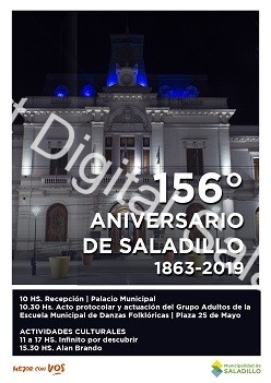 La Municipalidad de Saladillo invita a la población a los actos centrales por el 156 aniversario de la fundación de nuestra ciudad.