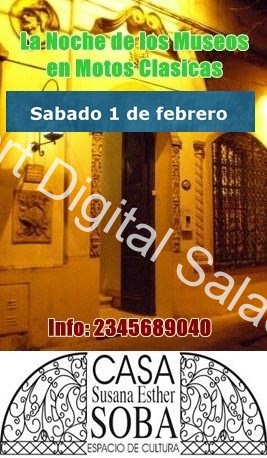 El club de Motos Clásicas y Antiguas de Saladillo se encuentra abocado a la organización de la “Noche de los Museos”. Se trata de una salida en motos antiguas visitando lugares por dicha ciudad, en especial la Casa de Susana Soba. Excusa imperdible para desempolvar los históricos vehículos. Esta prevista para el sábado 1 de febrero. Inscripción al 2345689040.
