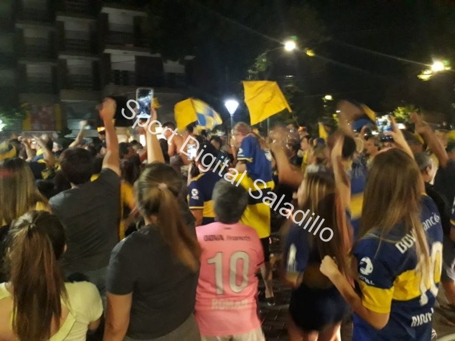 El campeonato fue para Boca Juniors y todo el país se vistió de fiesta en amarillo y azul. También aquí en nuestra ciudad. El centro de Saladillo estalló con cánticos, banderas, bocinas y explosiones. De la esquina de avenidas Moreno y Rivadavia hasta el mástil y por las calles cercanas se multiplicaron los cantos hacia el clásico rival. Hasta pasada la medianoche.