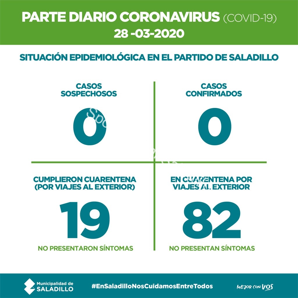 Saladillo: PARTE DIARIO POR CORONAVIRUS 28/03/2020