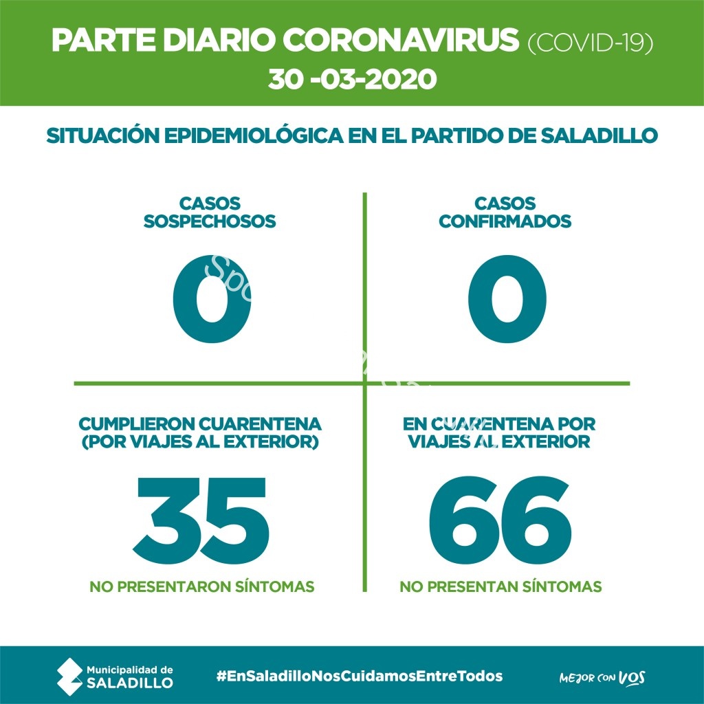 Saladillo: PARTE DIARIO POR CORONAVIRUS 30/03/2020