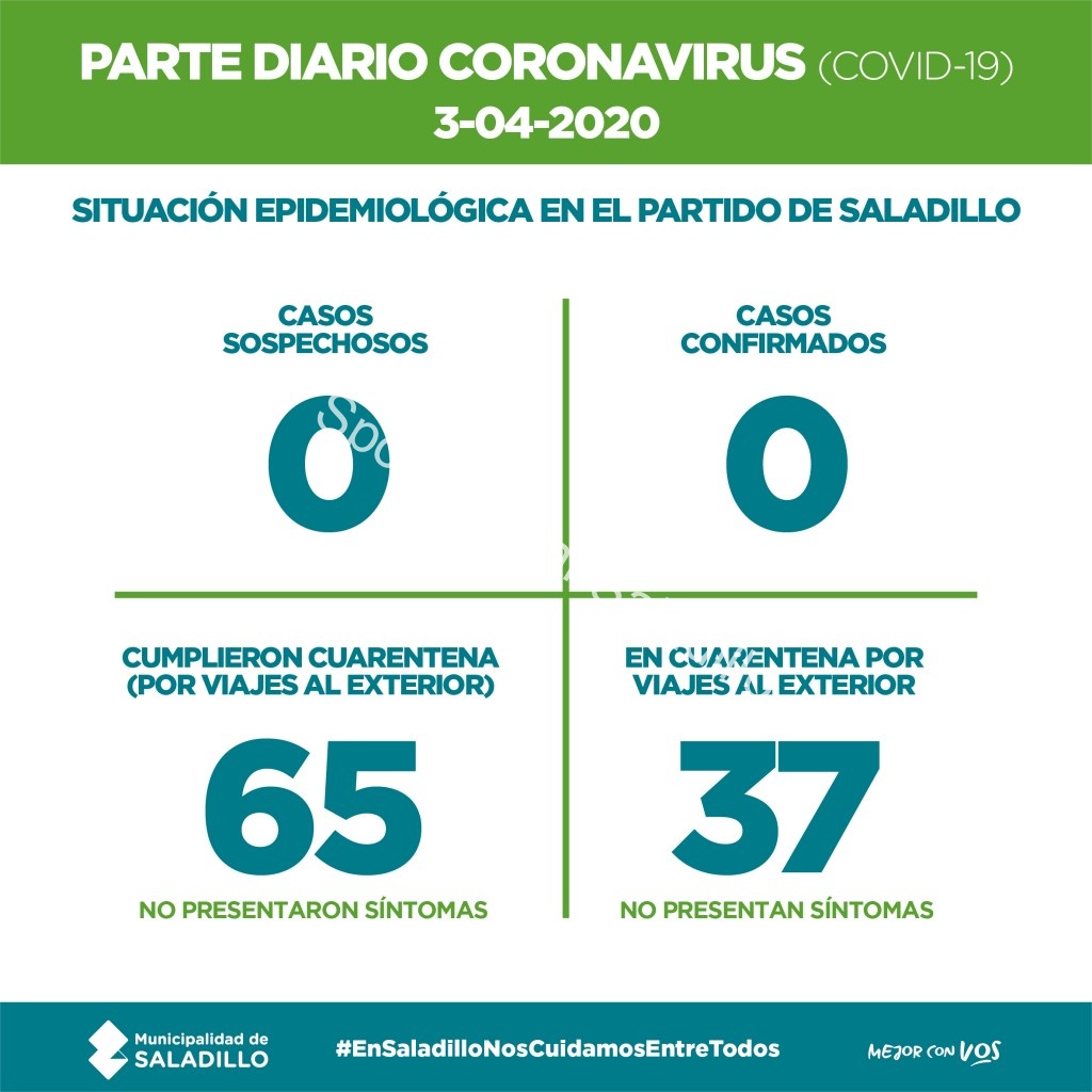Saladillo: PARTE DIARIO POR CORONAVIRUS 3/04/2020