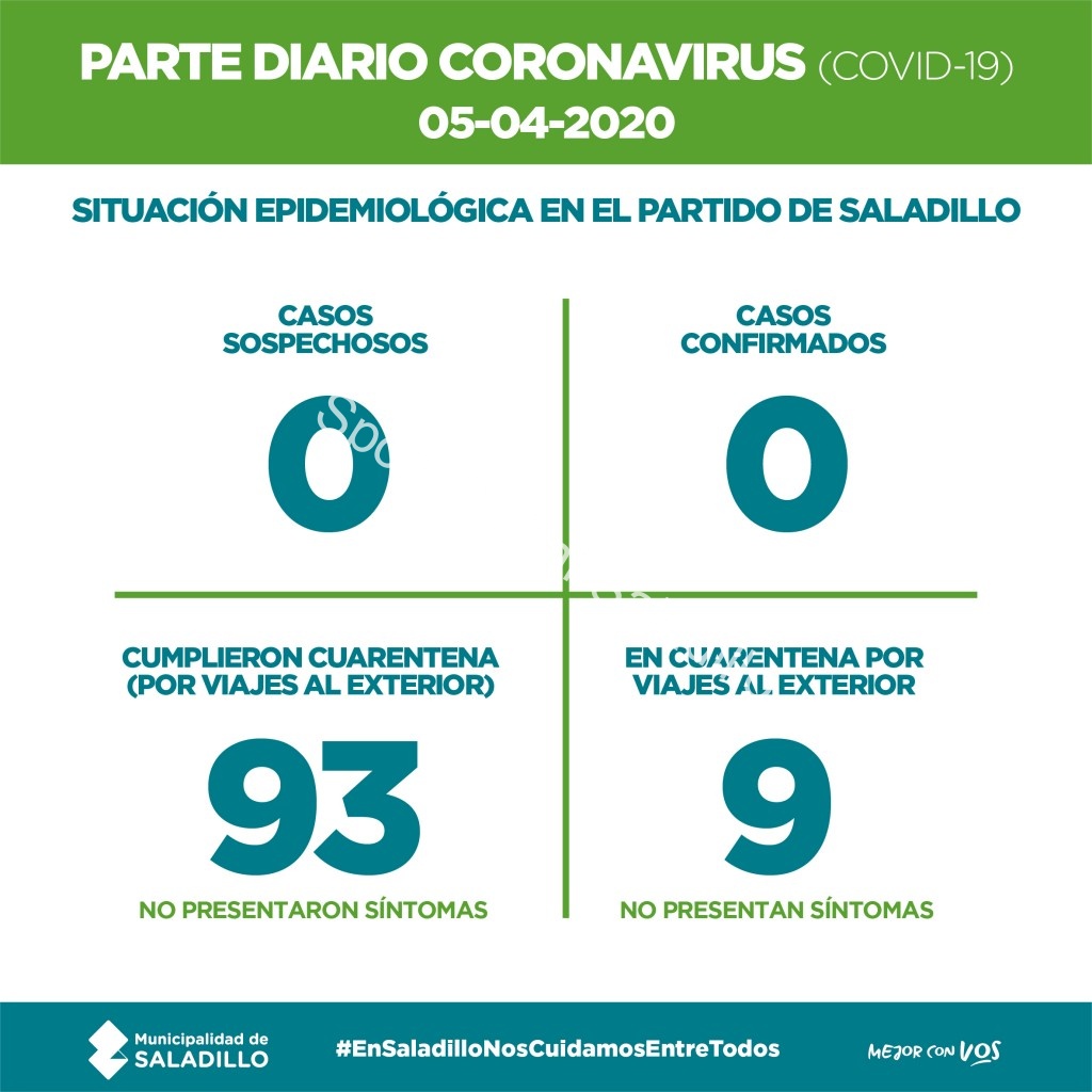 SALADILLO: PARTE DIARIO POR CORONAVIRUS 05/04/2020