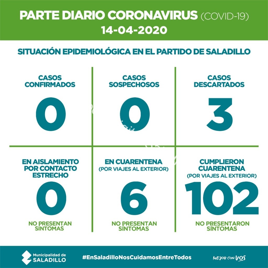 Saladillo: PARTE DIARIO POR CORONAVIRUS 14/04/2020