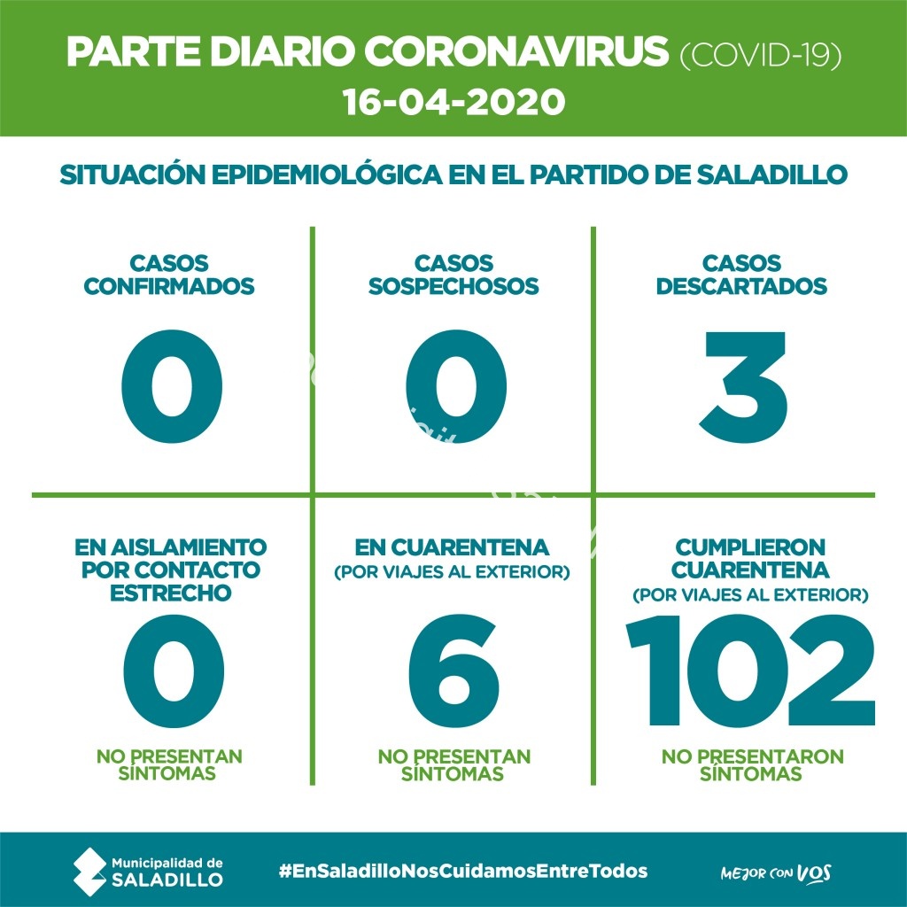 Saladillo: PARTE DIARIO POR CORONAVIRUS 16/04/2020