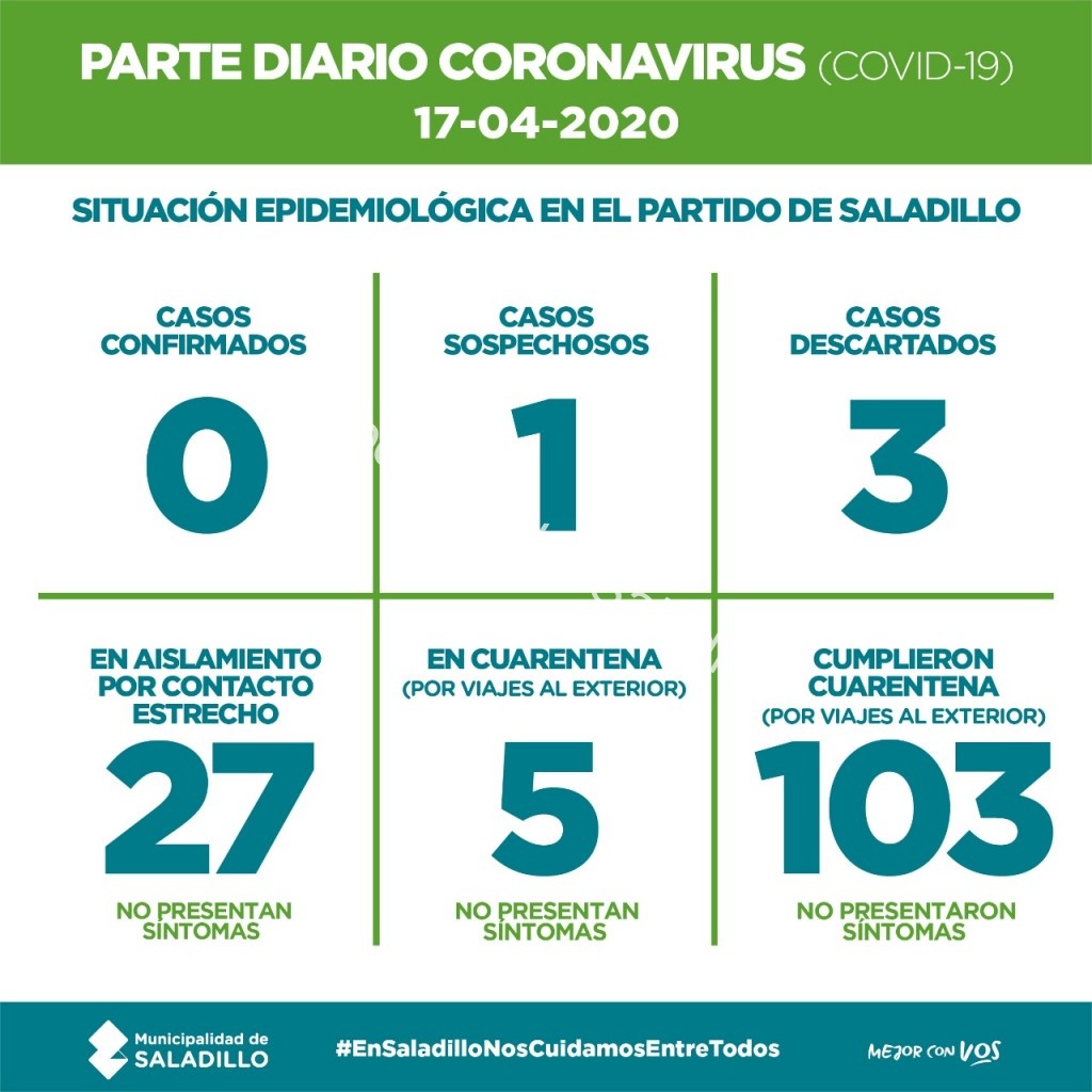 Saladillo: PARTE DIARIO POR CORONAVIRUS 17/04/2020