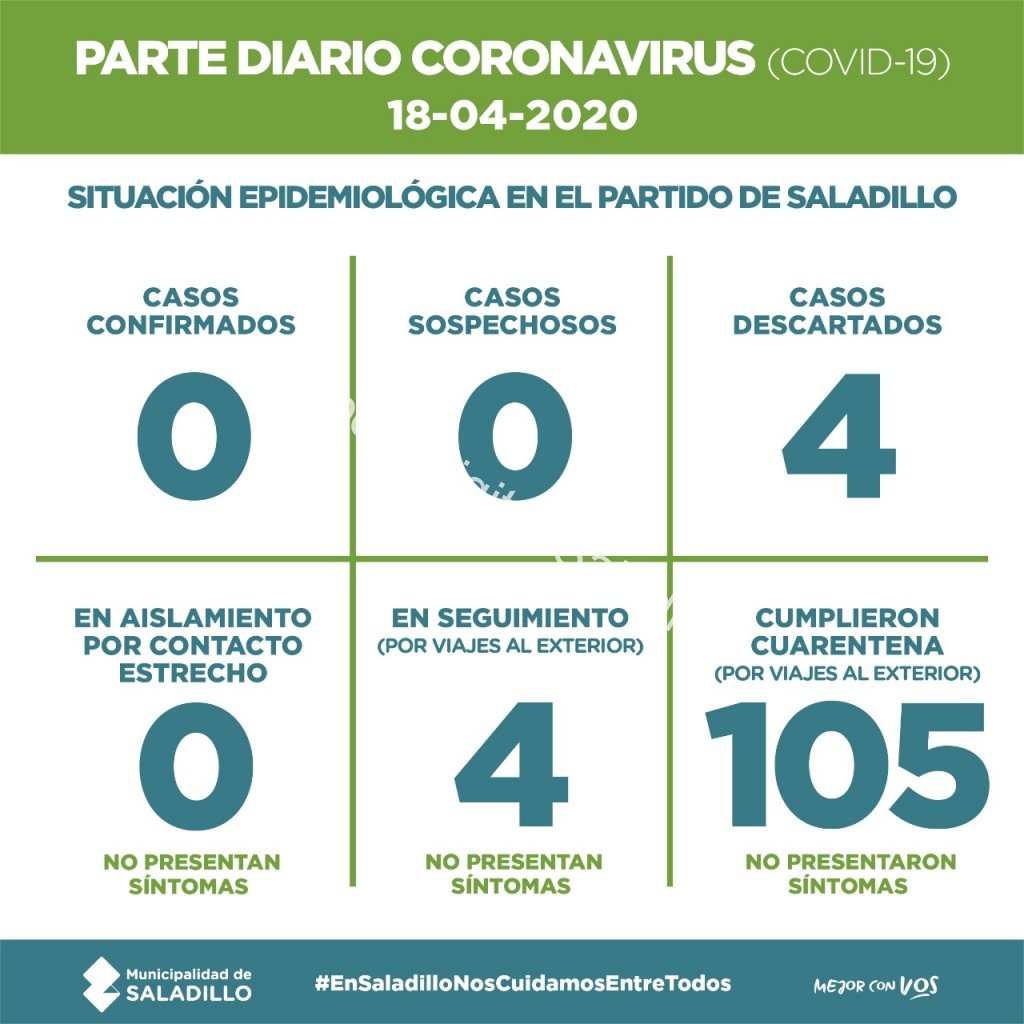SALADILLO: PARTE DIARIO POR CORONAVIRUS 18/04/2020
