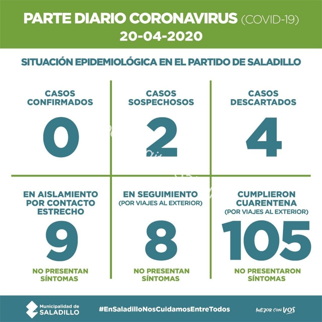SALADILLO: PARTE DIARIO POR CORONAVIRUS 20/04/2020