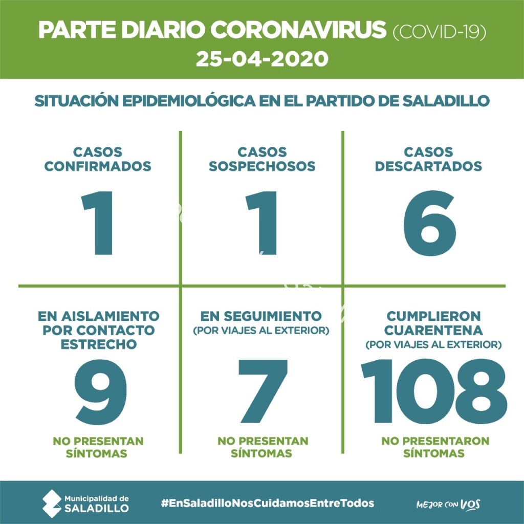 SALADILLO: PARTE DIARIO POR CORONAVIRUS 25/04/2020