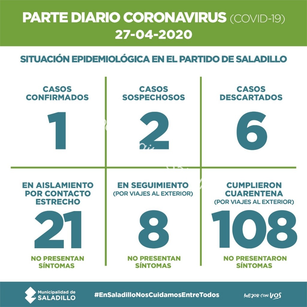 SALADILLO: PARTE DIARIO POR CORONAVIRUS 27/04/2020