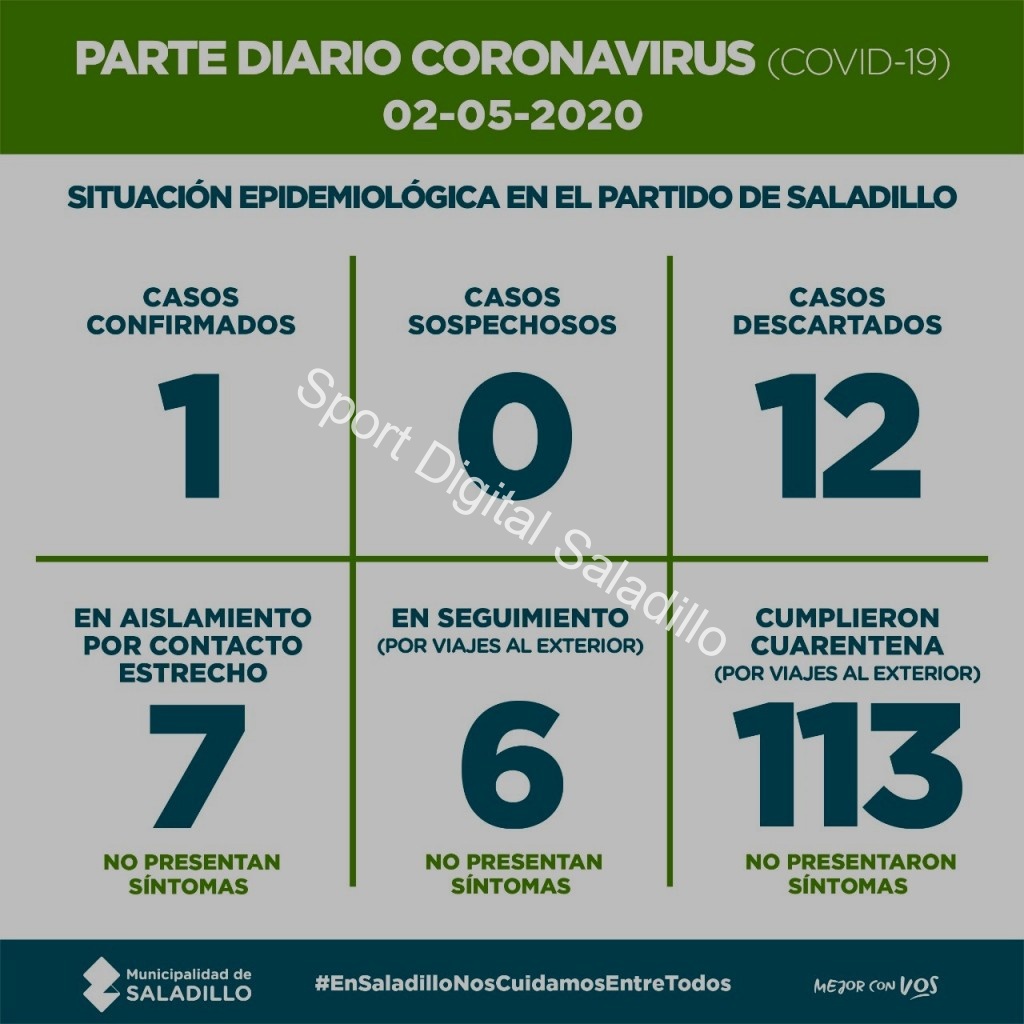 SALADILLO: PARTE DIARIO POR CORONAVIRUS 02/05/2020