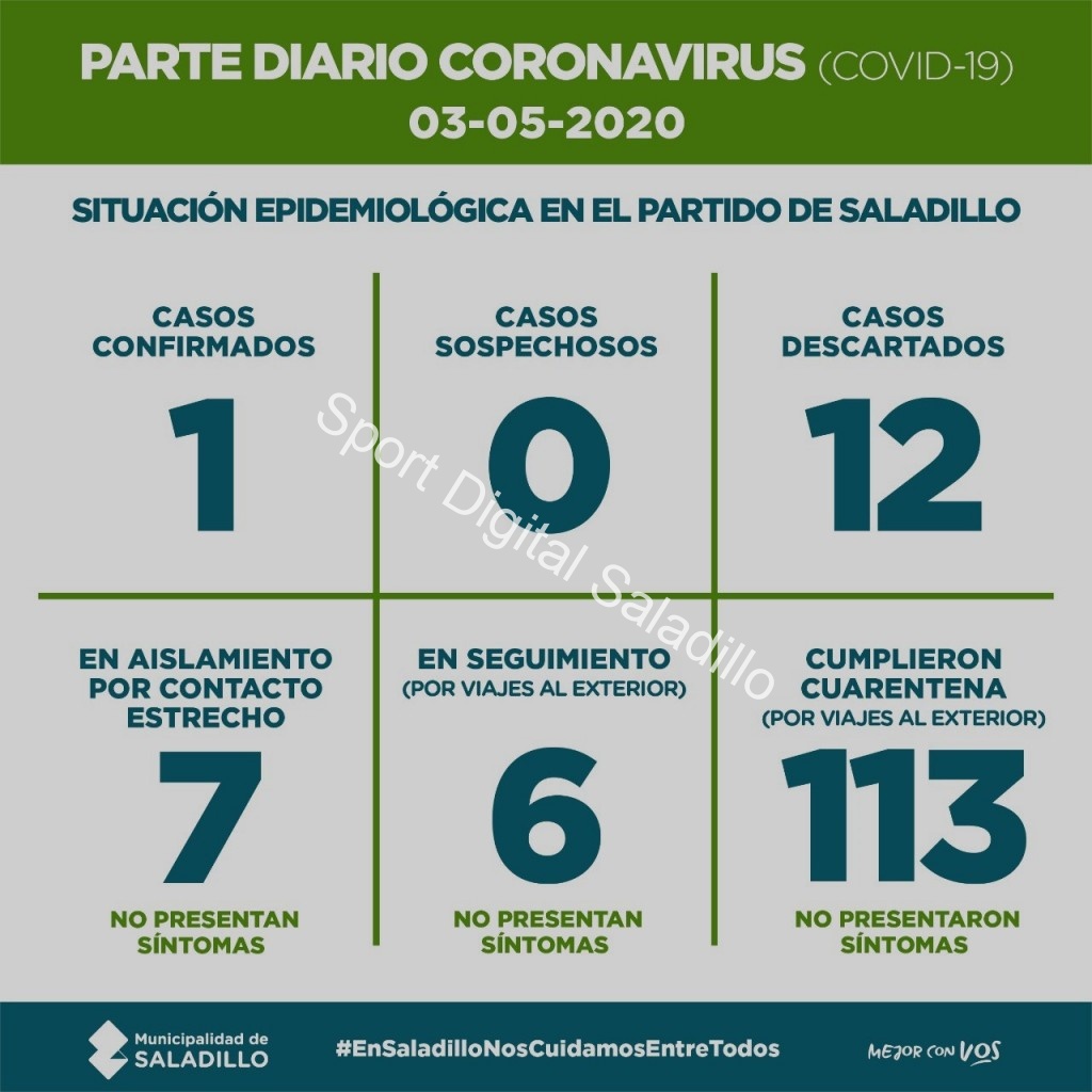 SALADILLO: PARTE DIARIO POR CORONAVIRUS 03/05/2020