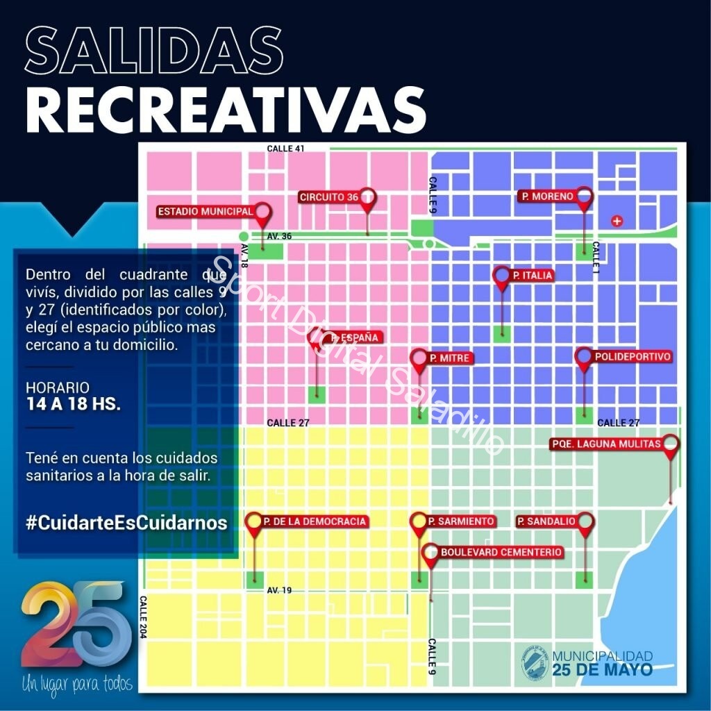 La Municipalidad de 25 de Mayo informa que a partir de este lunes 4 quedan habilitadas las salidas recreativas.