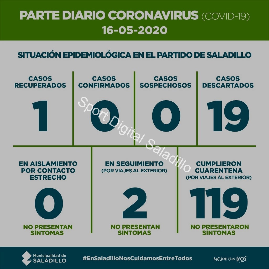 SALADILLO: PARTE DIARIO POR CORONAVIRUS 16/05/2020