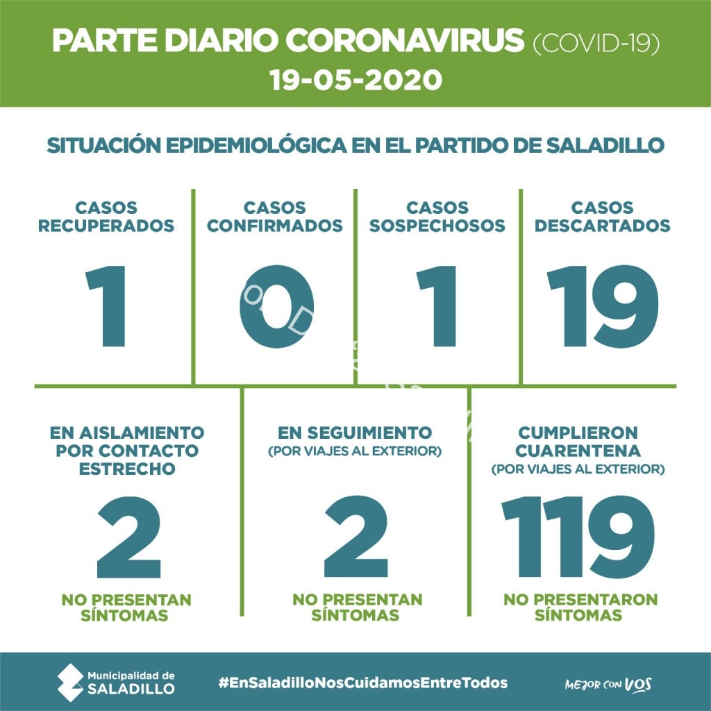 SALADILLO: PARTE DIARIO POR CORONAVIRUS 19/05/2020