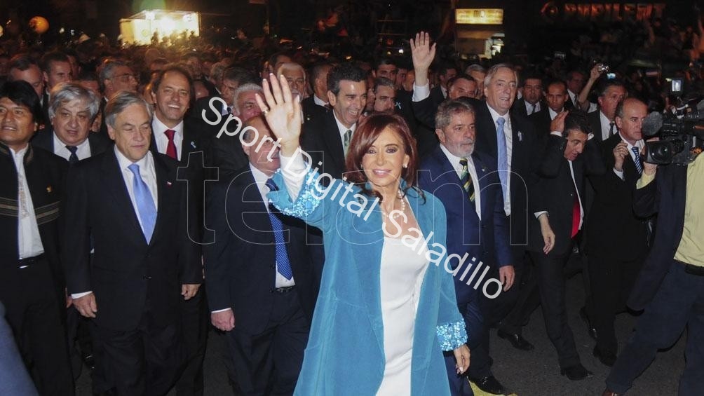 Luiz Inacio Lula Da Silva (Brasil), Hugo Chávez (Venezuela), Rafael Correa (Ecuador), Sebastián Piñera (Chile), Evo Morales (Bolivia), Fernando Lugo (Paraguay) y José Mujica (Uruguay), acompañaban a la presidenta argentina. Junto a ellos el derrocado presidente de Honduras, Manuel Zelaya.
