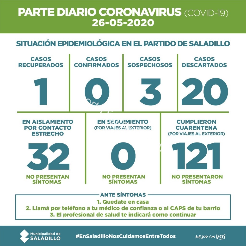 SALADILLO: PARTE DIARIO POR CORONAVIRUS 26/05/2020