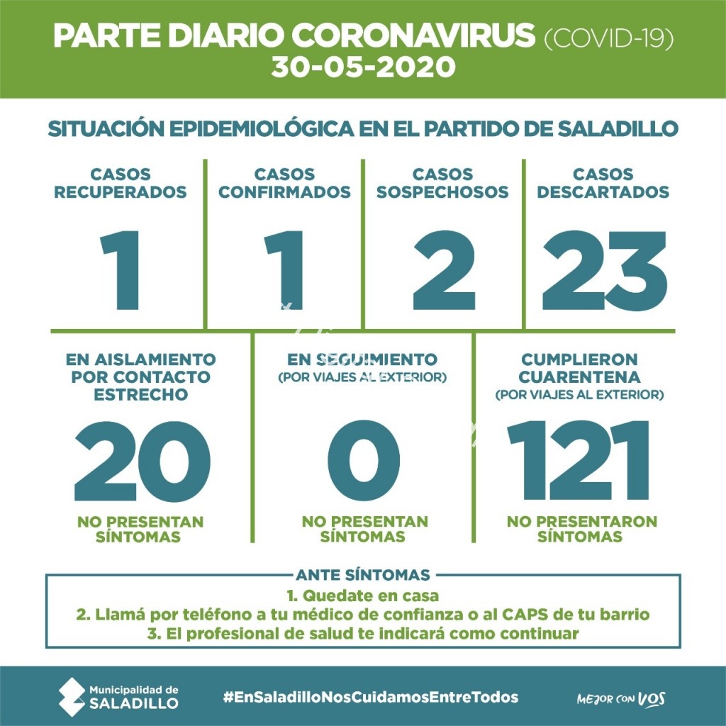 SALADILLO: PARTE DIARIO POR CORONAVIRUS 30/05/2020